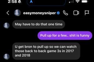 体育资讯10月03日讯 詹姆斯密友@CuffsTheLegend近日在推特上曝光了他与杜兰特的一段私信,内容涉及詹姆斯。