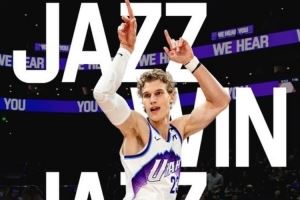 赛后爵士官方发布赢球海报,封面为马尔卡宁,姿势非常妖娆。球队另一内线努尔基奇则在社媒上转发了这个海报。