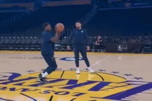 在对阵湖人的赛季揭幕战最后时刻,库里接小佩顿传球用超远三分杀死了比赛悬念。