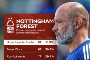 根据数据统计,努诺是森林队史英超胜率最高的主帅。努诺率队出战62场英超比赛,胜率达到了41.9%。上赛季努诺率队拿下英超第7,获得欧联杯资格。