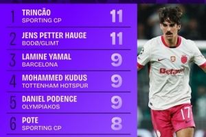 1.特林康(葡萄牙体育):11