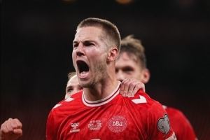 世预赛丹麦3-1击败希腊,霍伊伦破门、达姆斯高传射